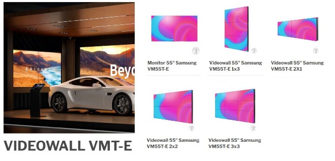 Ottieni videowall che lasciano a bocca aperta, grazie agli esclusivi Samsung SMART Signage VMT-E, progettati per avere la somma delle cornici fino a 1,8 mm, creano un'immagine unica e semplicemente perfetta. Contenuti ricchi mostrati con una qualità eccezionale delle immagini in Full HD sbalordiscono i clienti e regalano un fortissimo impatto ai tuoi messaggi. La luminosità dei pannelli arriva a 500 candele.